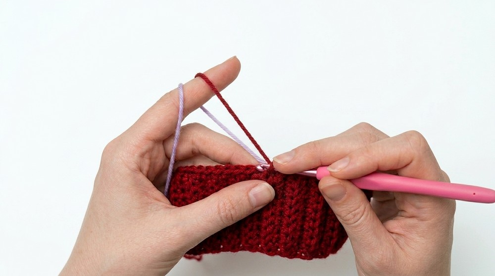 - Repeat Row 2, keeping the pattern consistent (sc for the first 16 stitches and hdc for the remaining stitches in the back loops only).