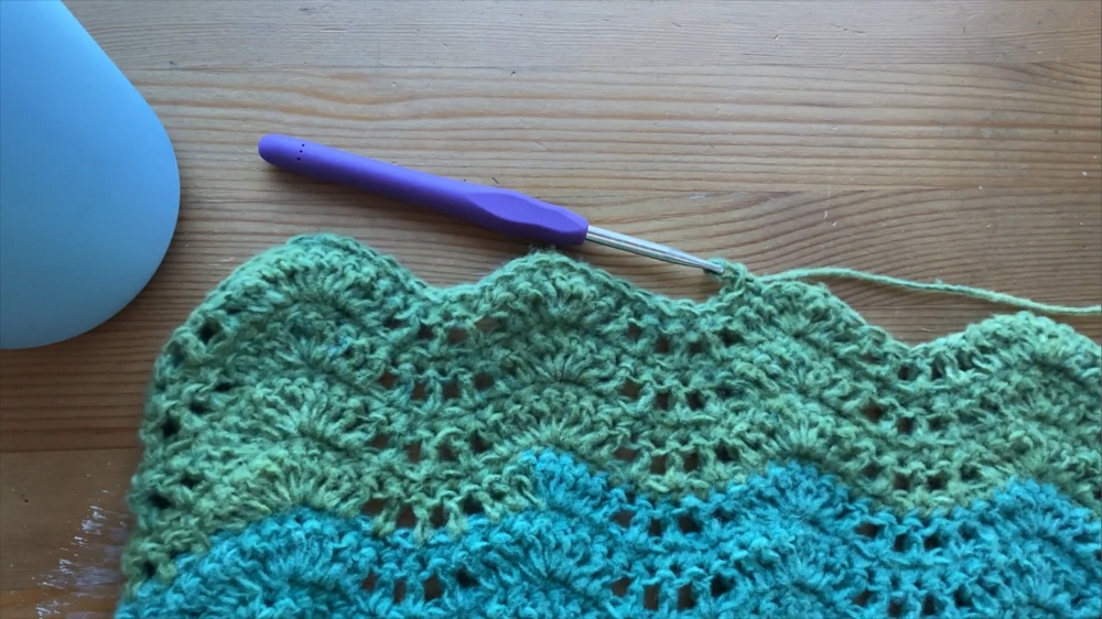 - Repeat wave-single crochet rows until the desired length is achieved.