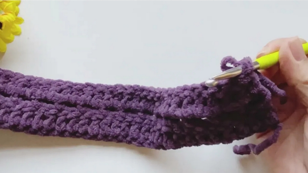 The pattern kicks off with chain stitches that create the foundation, setting the stage for consistent rows of double crochets. Thirty-five chain stitches are used to start the body, transitioning into a textured sequence of single crochets spaced with chains.