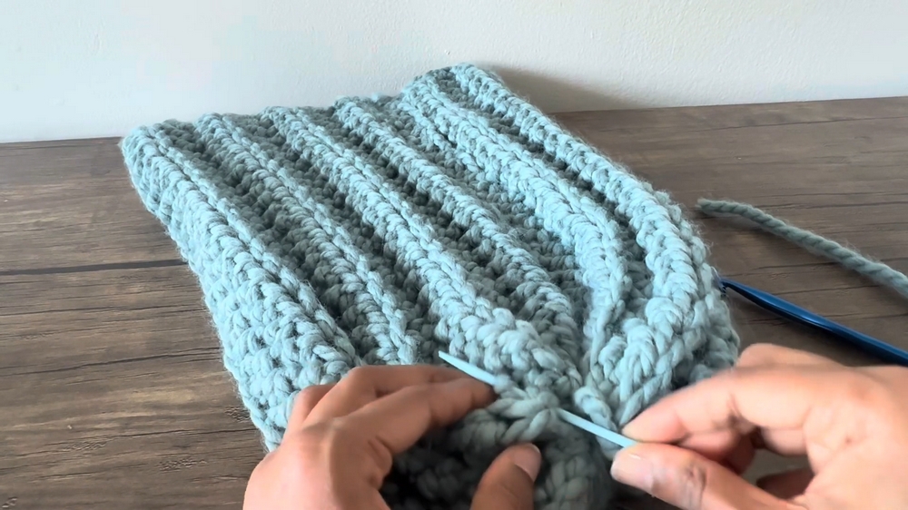 Subsequent rows utilize the back loop half double crochet stitch, further enhancing the ribbed detail. By repeating this sequence for multiple rows—typically up to 24—you shape the body of the hat, creating a cozy and stretchy fabric.