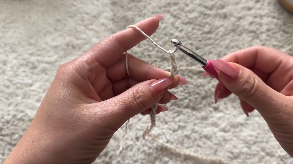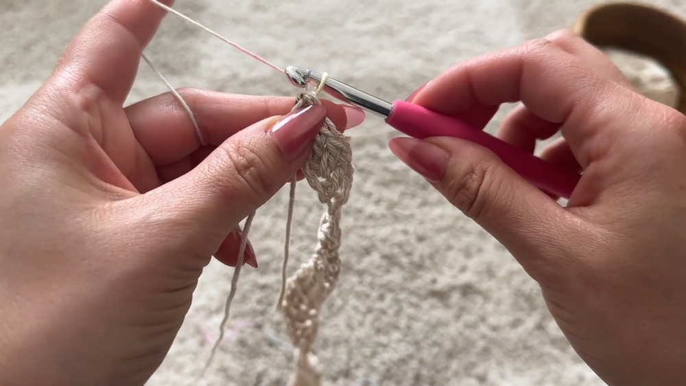 - Place one double crochet in the fourth chain from the hook and another 1 double crochet per chain in the next two chains.