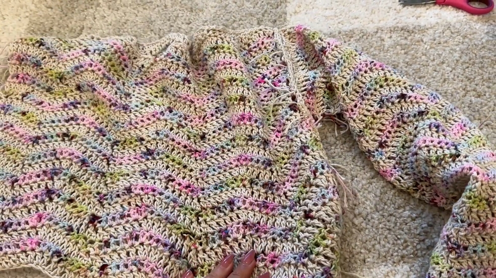 The body starts with a foundation chain, growing upward in colorful waves, while the sleeves are stitched on separately, giving room for customization. The neckline and hem are kept neat with subtle ribbing for a clean finish. This stylish staple proves that a simple silhouette, elevated by texture and color, can become a standout favorite in any handmade wardrobe.