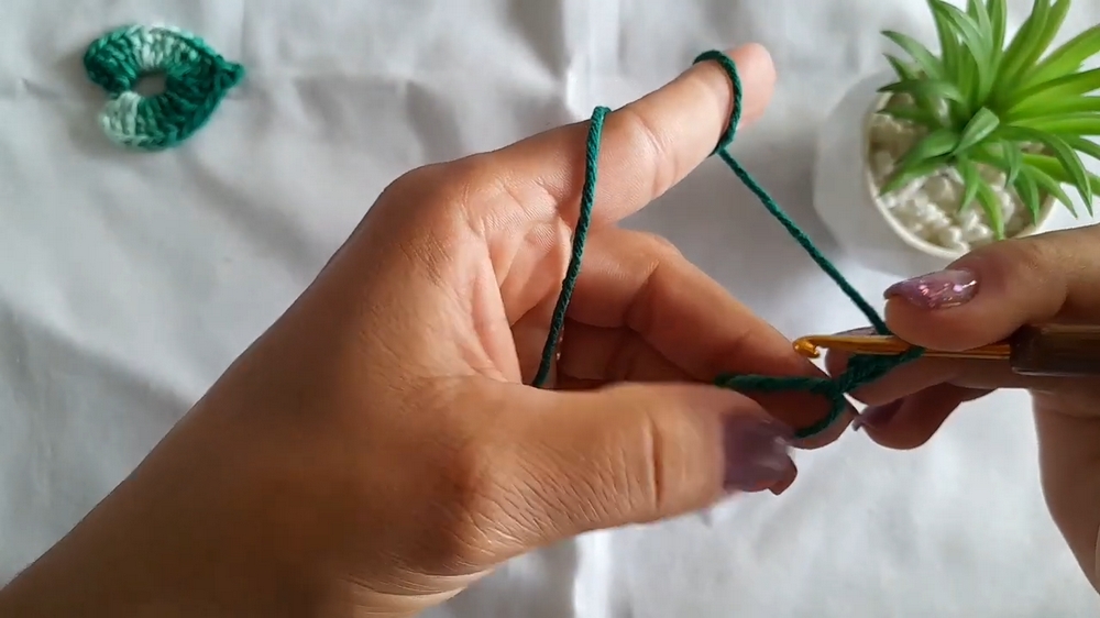 - Begin by forming a magic ring. This will serve as the foundation of your crochet leaf.