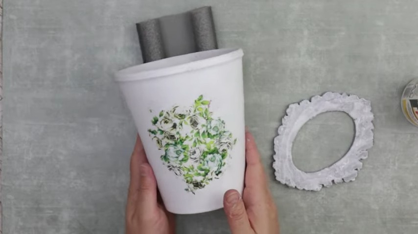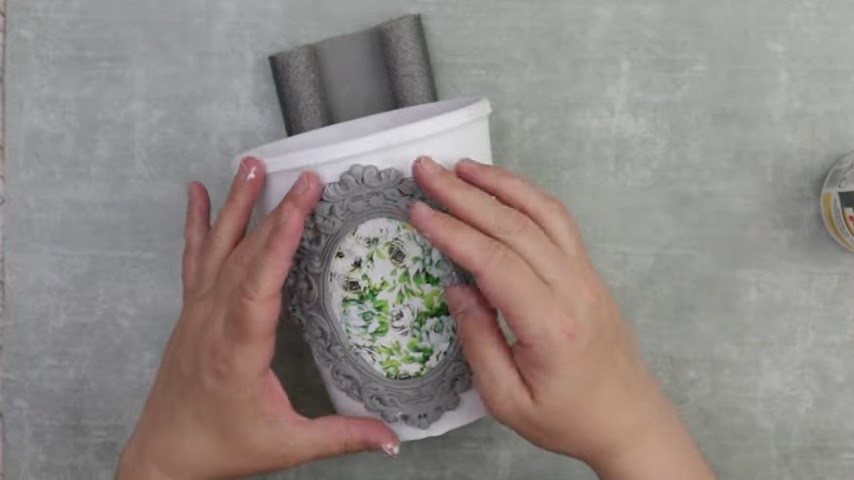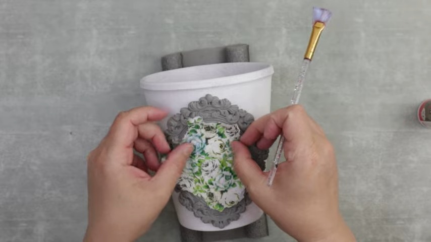 Floral Fabric Installation: Soft, floral fabric pieces can fill the oval opening. Using a pair of scissors, trim the fabric, and secure it onto the pot with adhesive. This adds a touch of elegance to your otherwise rustic artwork.