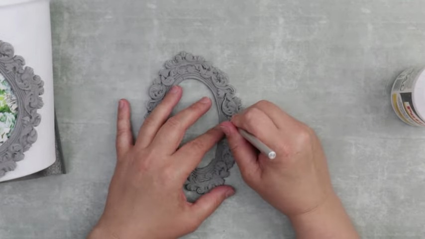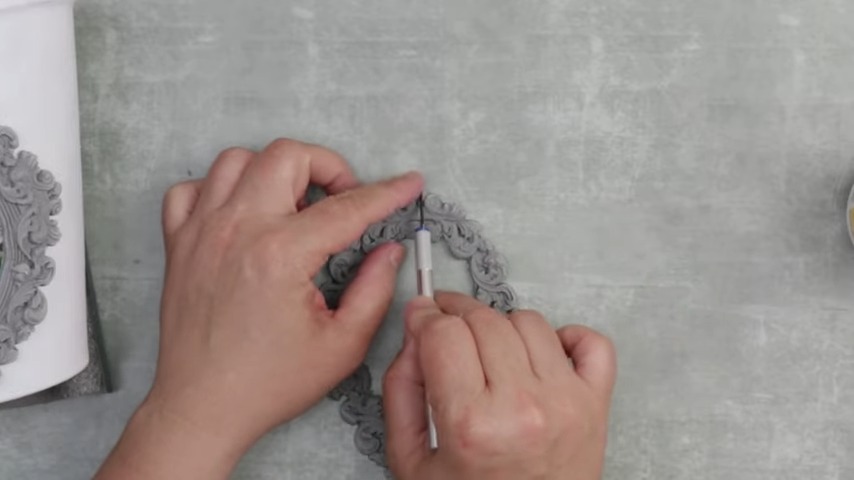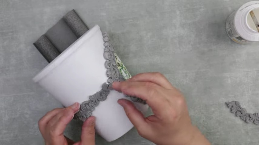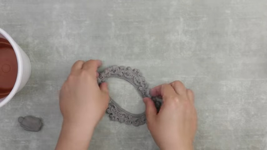 Creating Embellishments: Use air-dry clay to craft a unique, front-facing embellishment for your pot. Employ a rubber-like structure to shape your clay creatively. Highlight your artistic effort with an intriguing oval-like empty space at the center.
