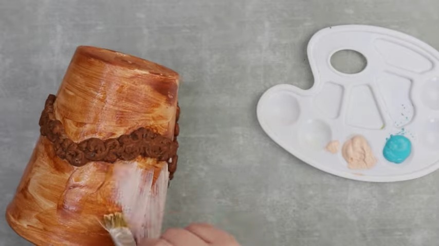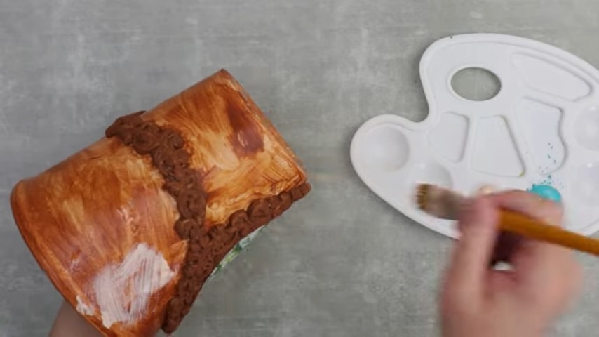Familiar Painting: Start the painting process by applying dark brown acrylic paint. This lends an antiquated touch to your creation, amplifying its vintage vibe.