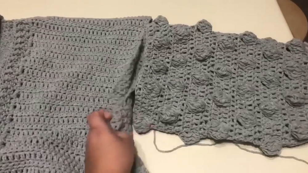 - Leave a 9-inch gap at the top for sleeves and join the sides using a tapestry needle with yarn.