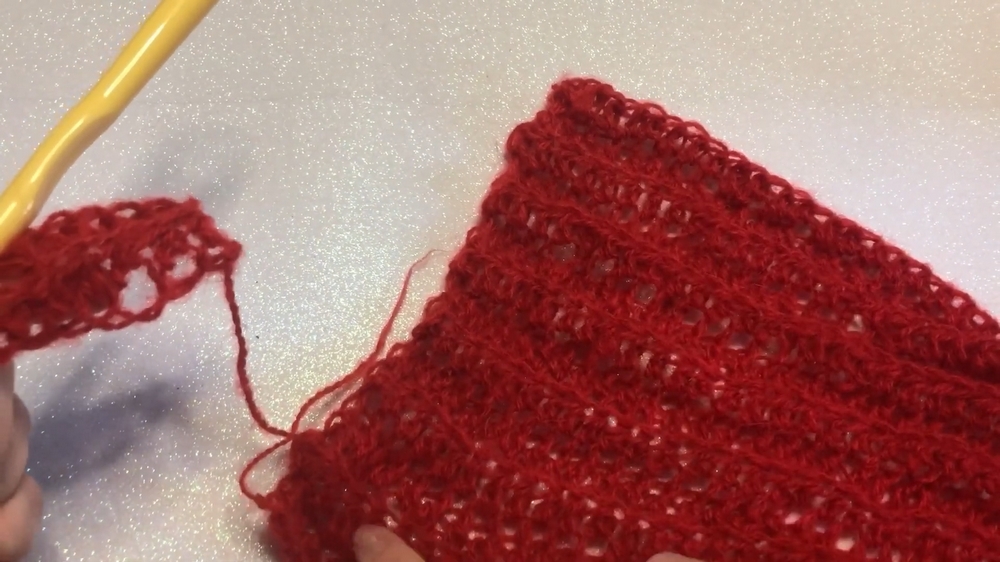 - Check the width and length by attaching it to your arm or comparing it with a sweater. Adjust rows as necessary.