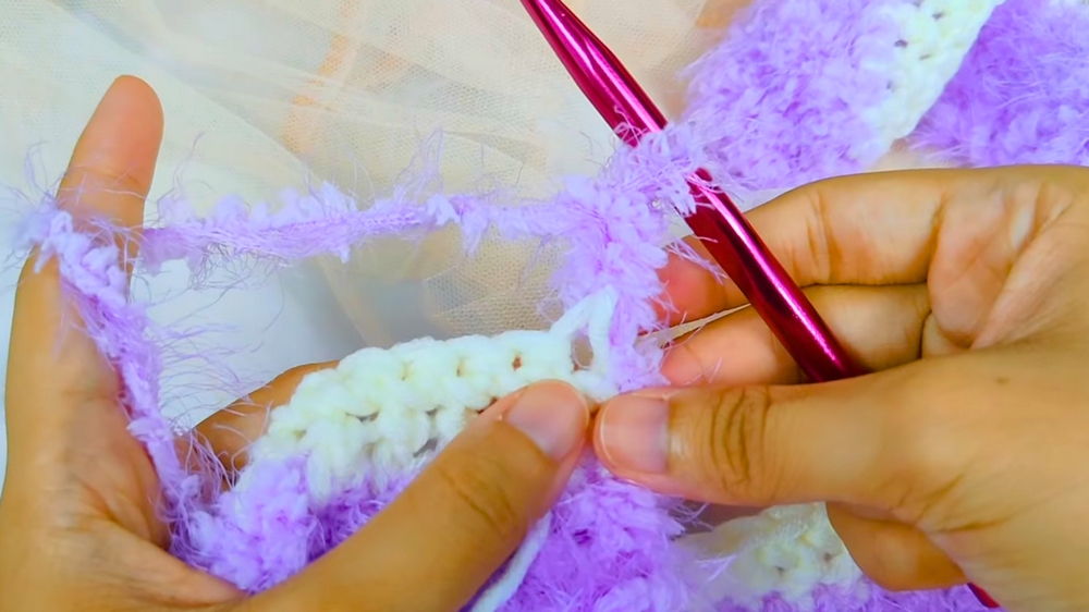 When working with furry yarn, feel the stitches with your fingers if you can’t see them, and use well-lit areas to ensure better visibility.