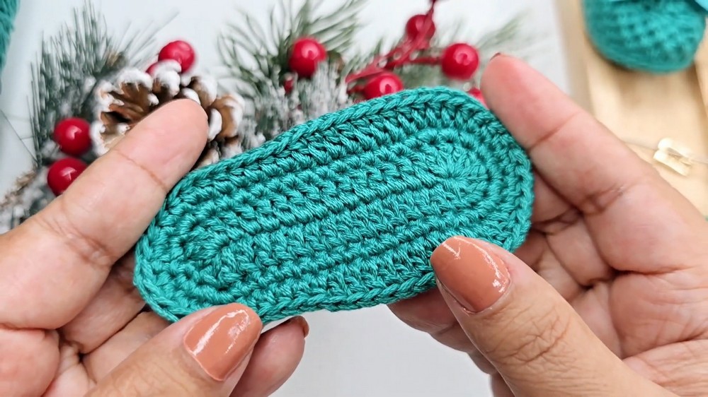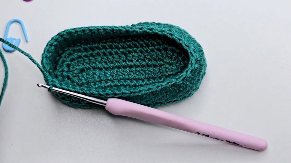 Double-Layer Sole: You crochet two separate sole pieces and join them with a slip stitch border, providing a structured, thick, and professional base for the shoe.