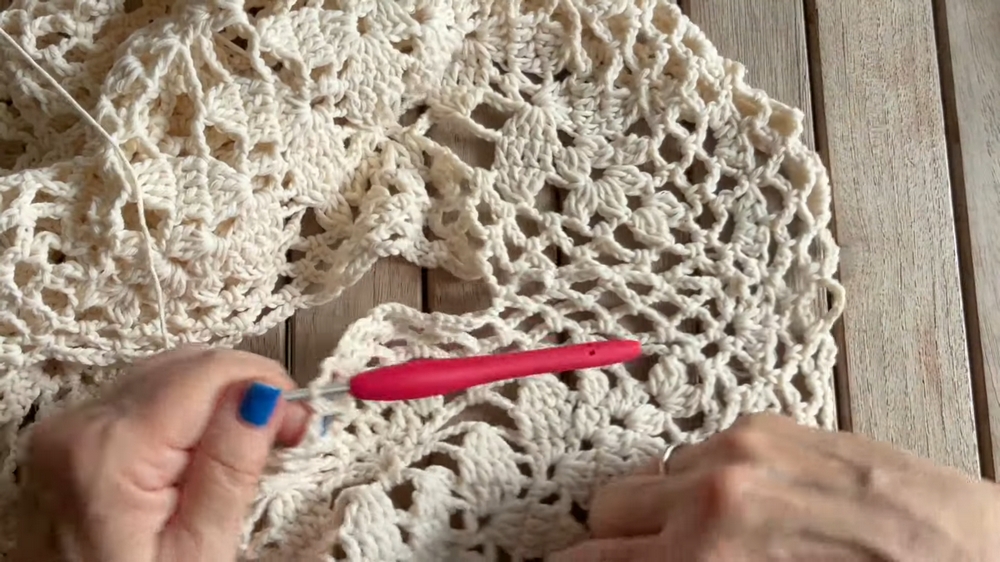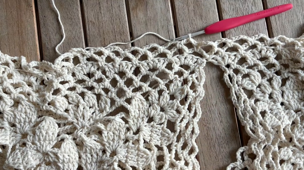 Take your time with the joining process. Ensure the granny squares are aligned correctly and the zigzag stitch creates a neat and consistent seam. This step ensures the blouse looks professional and maintains structural integrity.