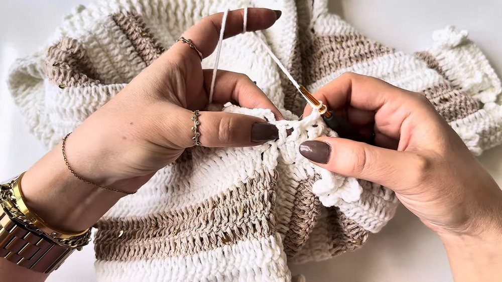 - Between the Sleeves and Back: Each increase consists of one dc, one chain, followed by another dc.