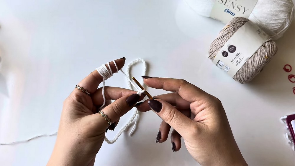Chain 80: Begin with a starting knot on the crochet hook and chain 80 stitches. Adjust this number based on body size (see Pattern Variations for details).