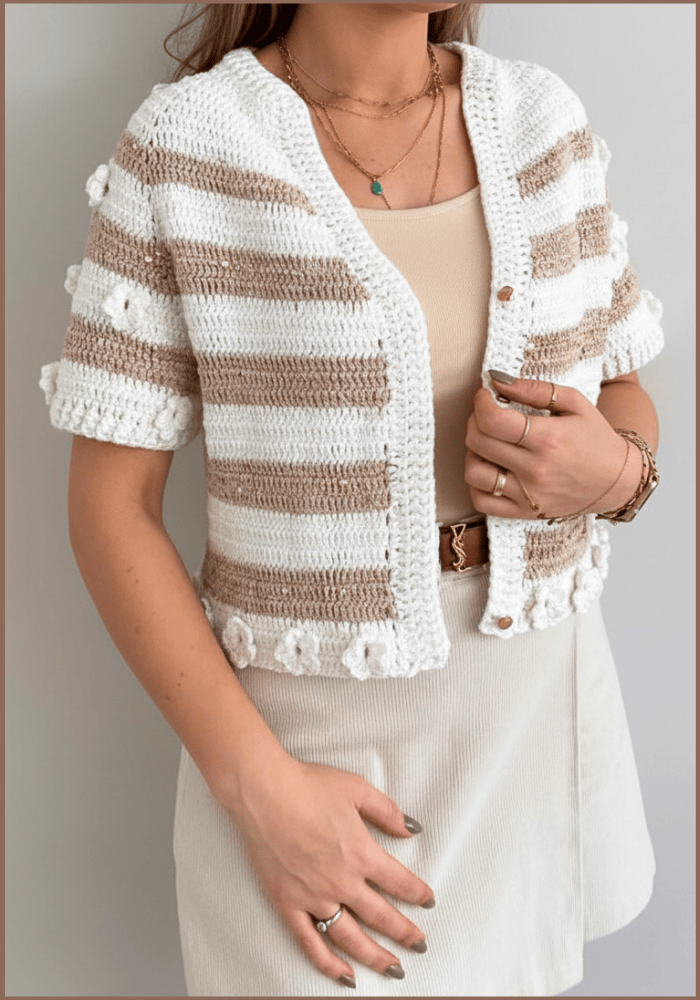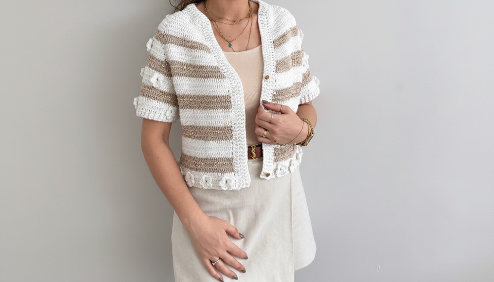 Create your own stylish crochet short sleeve cardigan with an easy-to-follow pattern that adds a touch of charm to any outfit and lets you shine all day long.