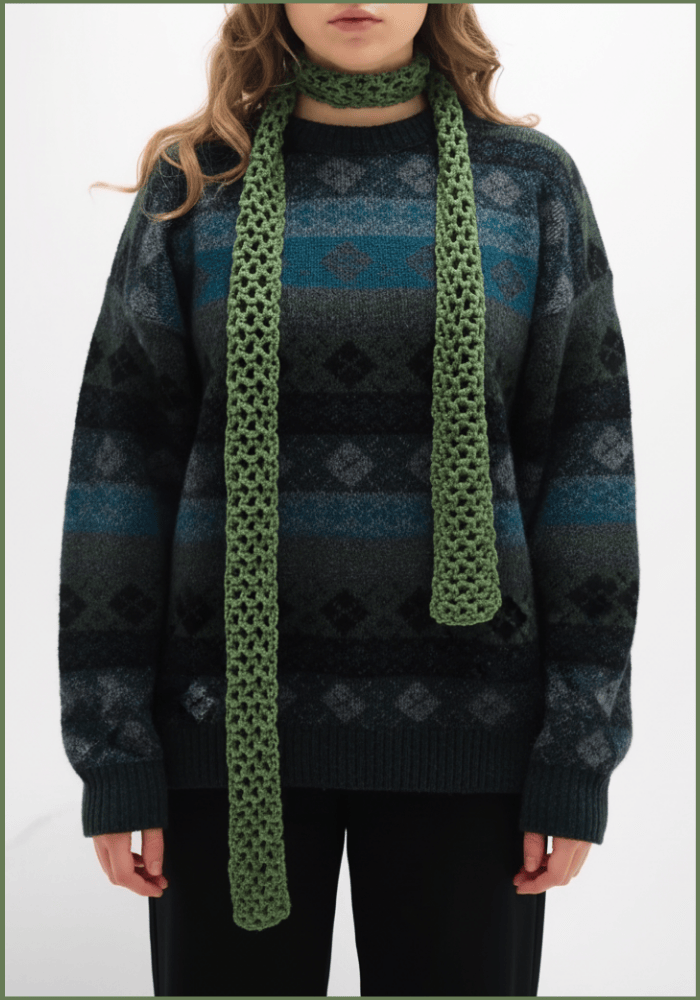 Bring your crochet skills to life with a playful mesh scarf that’s light airy and stylish adding a touch of joy and personality to your wardrobe effortlessly.