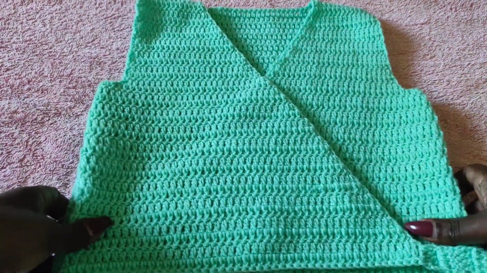 - Use single crochet stitches (or darning needle) to connect the panels from the bottom to the shoulder area.