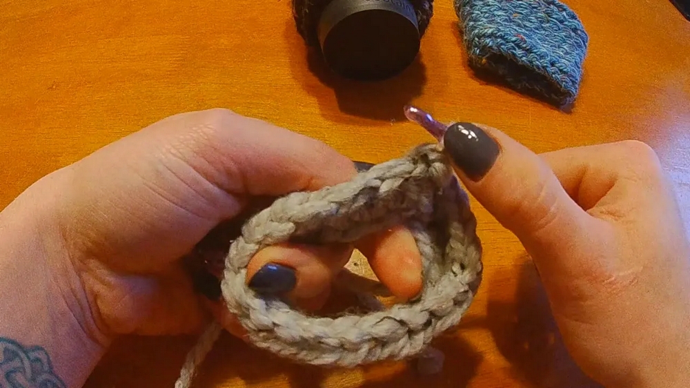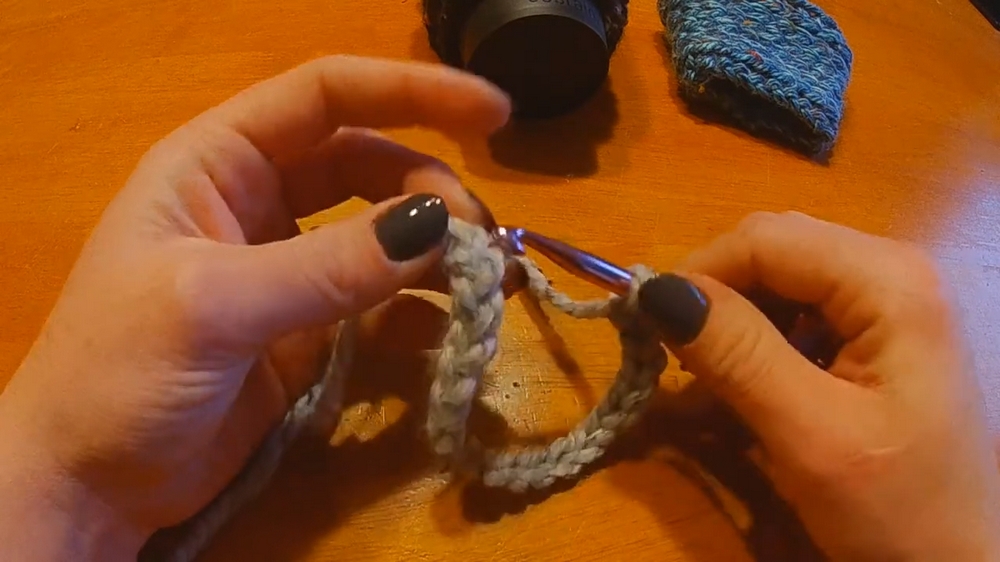- Chain 1, yarn over, and identify the little loop at the back of each stitch (the third loop).