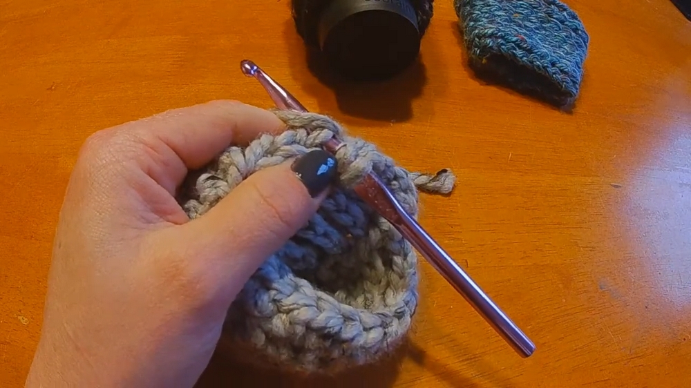 - Repeat this half double crochet (HDC) in each stitch around, for a total of 20 stitches.