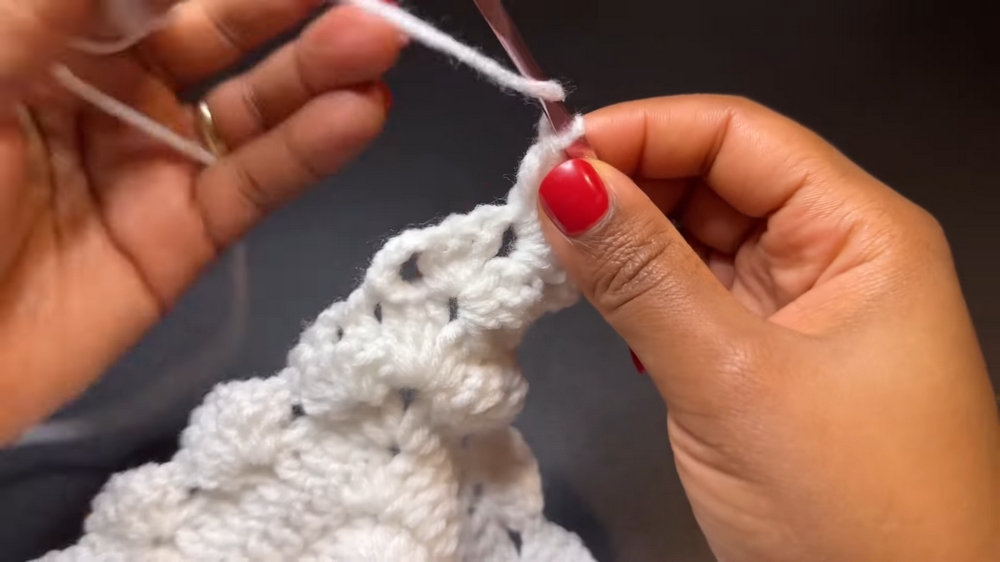 The pattern emphasizes a rhythmic process of chain stitches and double crochets, which are built row by row until the desired diamond sections are completed. As the rows expand, the sculpted design gracefully balances beauty and utility, offering proper shape and coverage.