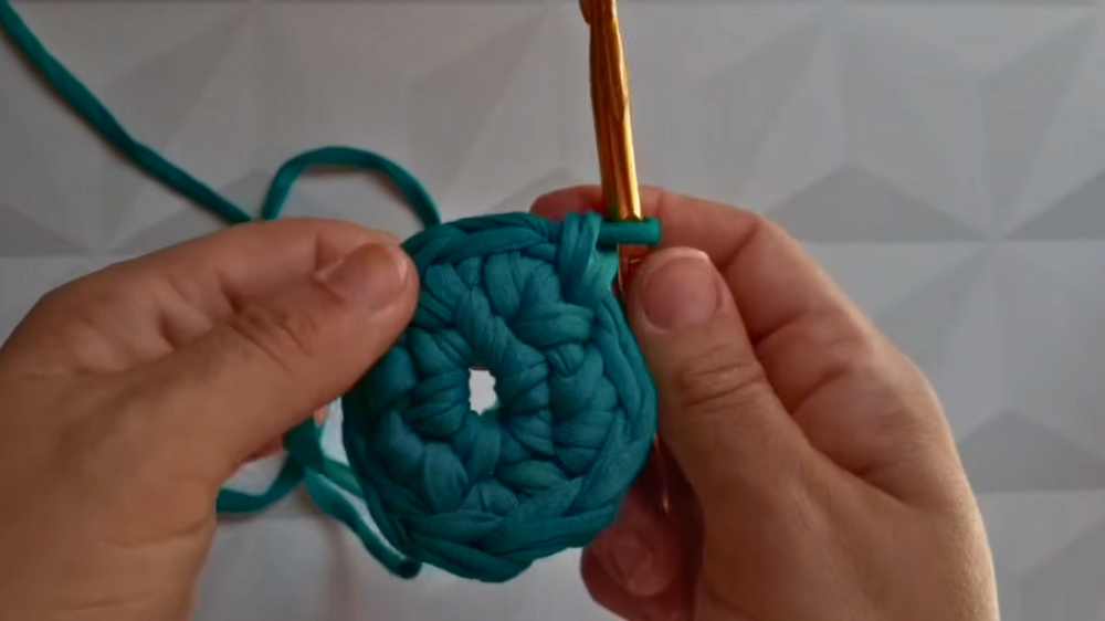 Early rows are marked by increases to ensure the circular pattern remains even while expanding to its desired size. Around the ninth row, a structural change occurs, with stitches being placed uniformly without increases to create the bag’s rounded shape and firmness.