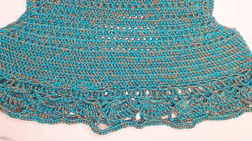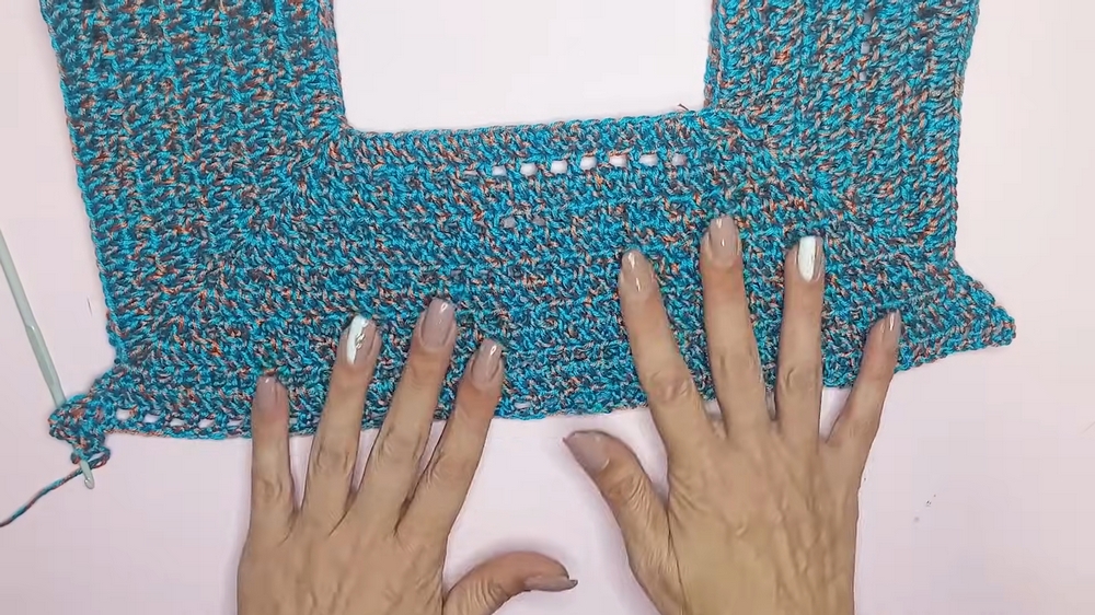 - Alternate between net stitches and single or double crochet rows to shape the armhole.