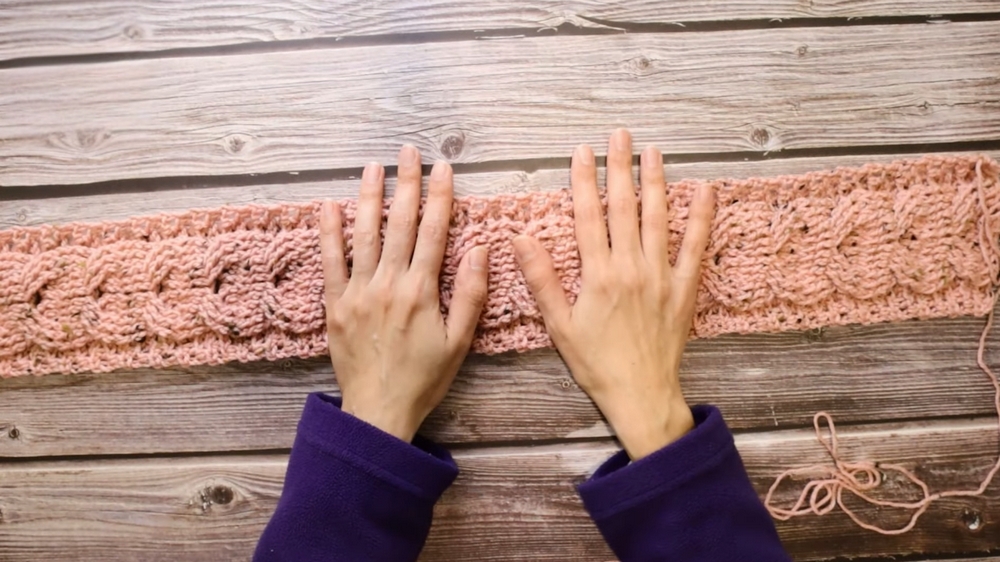 Once the braid is complete and joined, crocheters progress to shape the yoke using rounds of single and double crochets.